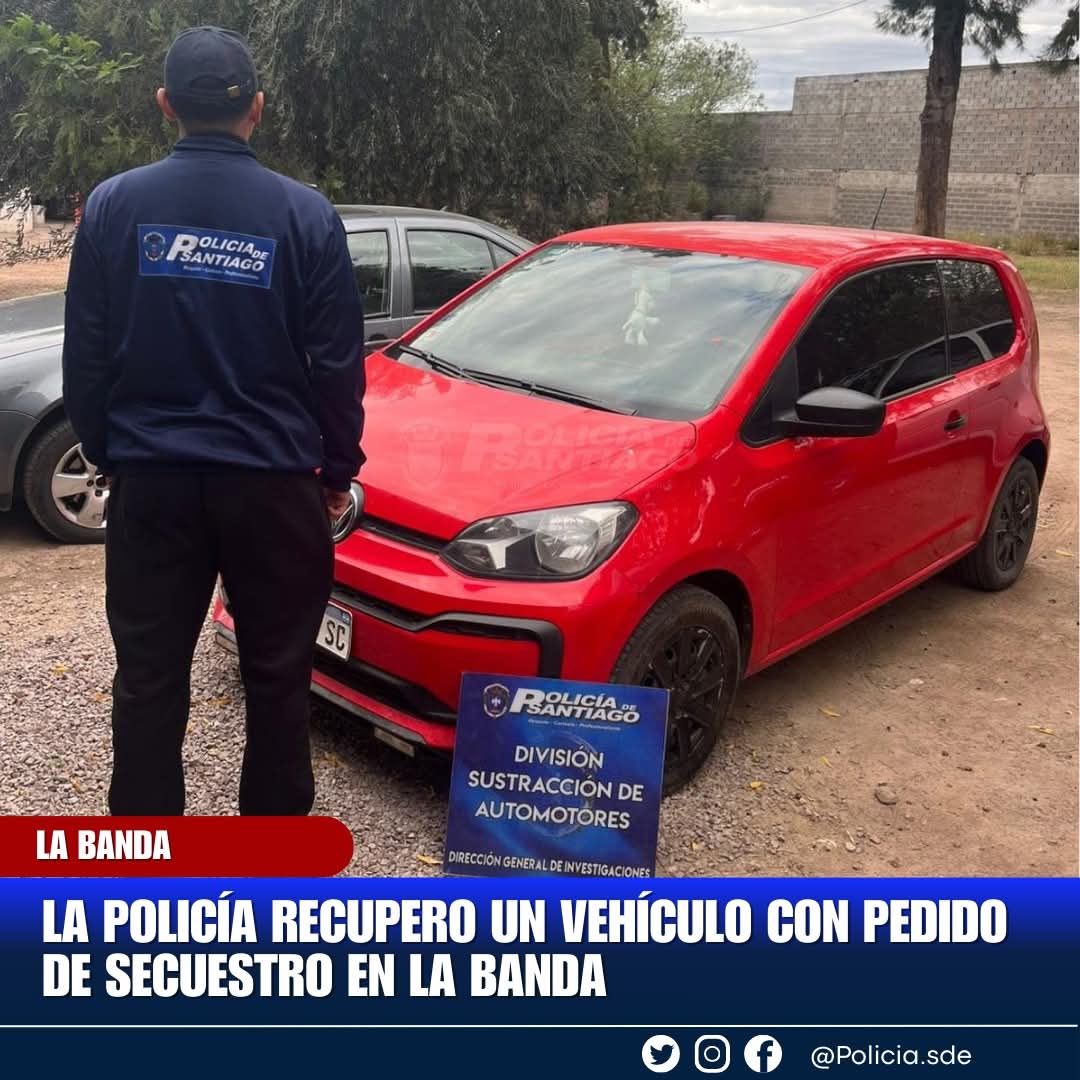 Durante un recorrido preventivo por la intersección de calles Antenor Álvarez y Misiones. Los efectivos detectaron un rodado marca Volkswagen color rojo estacionado. Al verificar sus datos en el sistema de la DNRPA, se constató que el mismo tenía un pedido de secuestro vigente desde el 25 de agosto del corriente año, solicitado por el Ministerio Público Fiscal de La Banda.