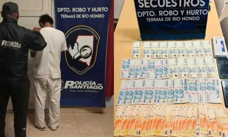 Con esta información, los efectivos procedieron a la aprehensión del individuo y al secuestro de una mochila con dinero en efectivo y teléfonos celulares. Posteriormente, en un domicilio vinculado al detenido, se incautó una suma adicional de quinientos mil pesos.