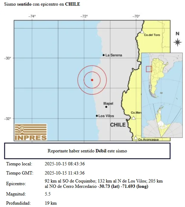 El movimiento telúrico de 5.5 en la Región de Coquimbo tuvo una profundidad de solo 49 kilómetros y repercutió en tres provincias argentinas.