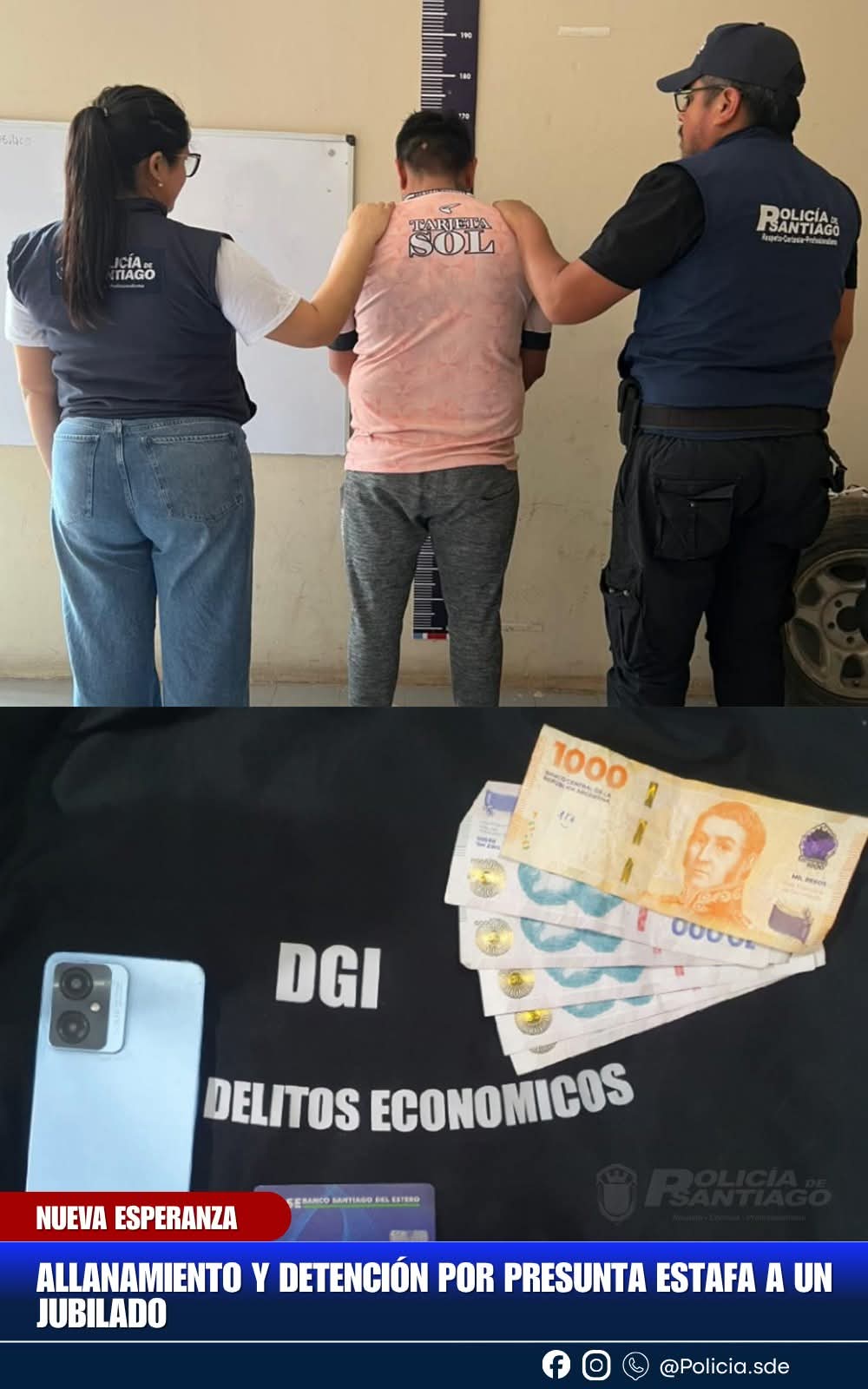 Un hombre fue detenido durante un operativo realizado por personal de Delitos Económicos (DGI) de Nueva Esperanza, Dpto. pellegrini, en una causa por presunta estafa en perjuicio de un jubilado de la zona.